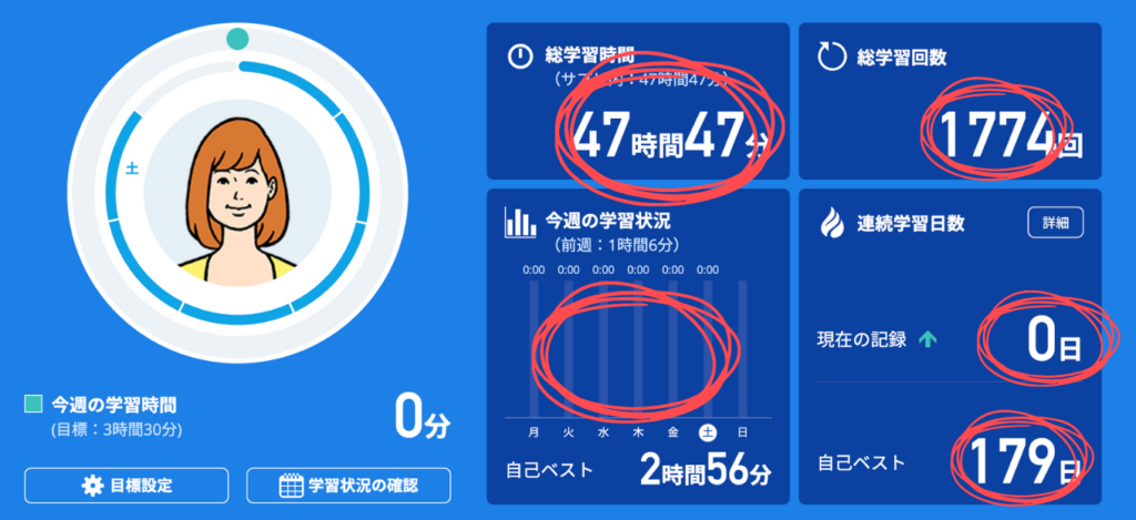 チャプターや学習時間が画面で見えるため、モチベーションを保ちやすかったです。