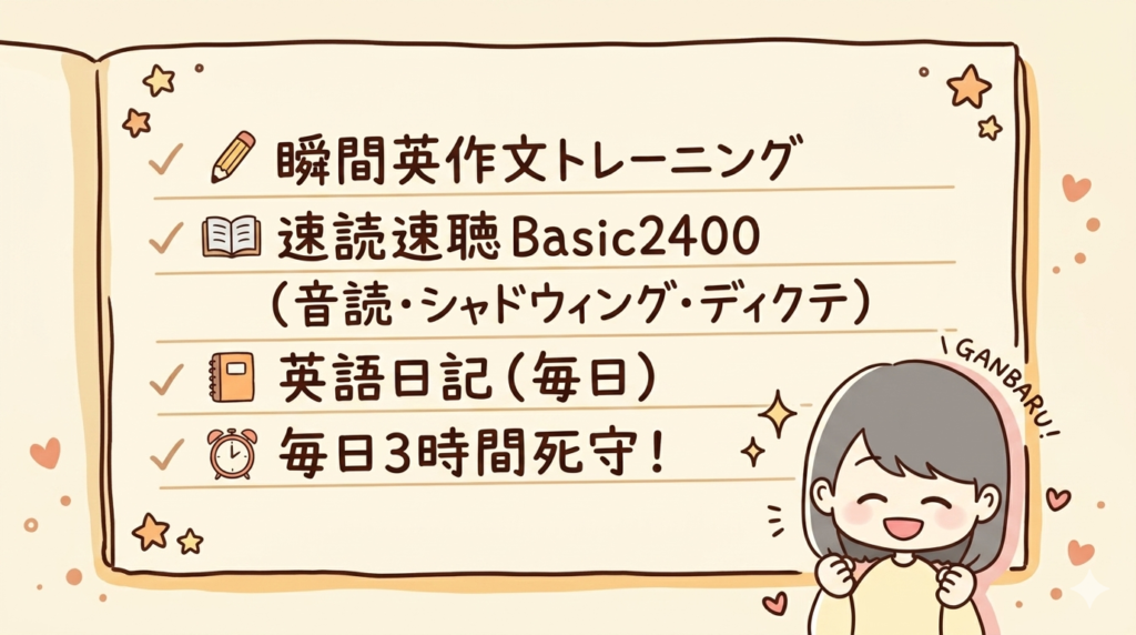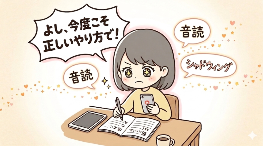 音読も、シャドウィングも、ディクテーションも、どれだけやってもリスニングのスコアが上がらない。長文も、集中して取り組んでいるときは読めても、少し離れるとたちまち読めなくなる。ずっと「量が足りないせいだ」と思い続けてきましたが、そもそもレベルが合っていなかった——それにやっと気づけた瞬間でした。